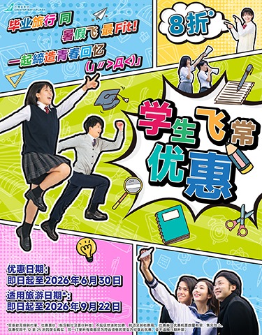 凡12岁至25岁的学生即可享8折*优惠,预订指定航线往返机票 | 立即购买