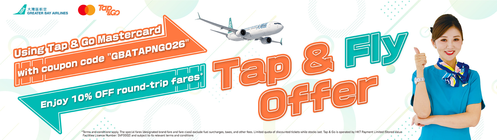 Greater Bay Airlines X Tap & Go Mastercard - Terms and Conditions for 10% off to Selected Destination Flights: