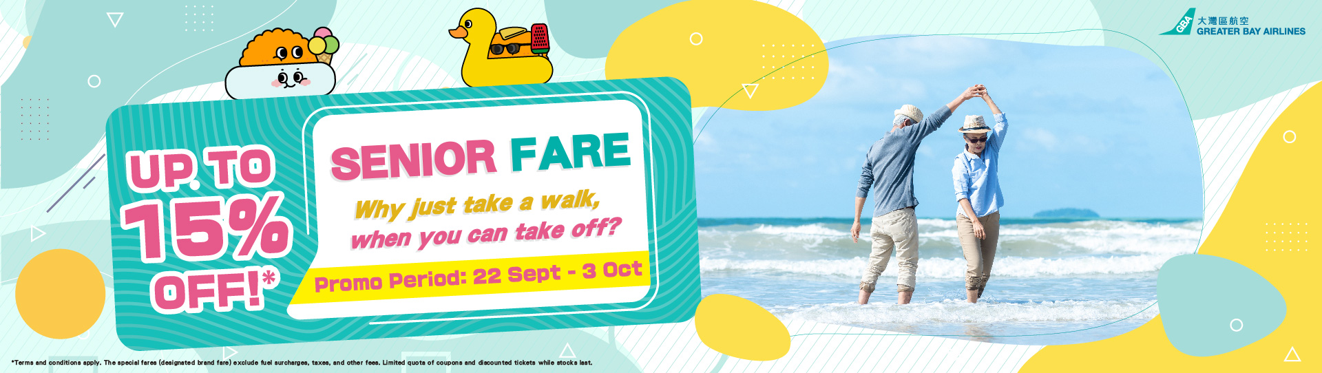 - Only applicable to passengers aged 60 or above. All passengers on the same booking must be 60 years old or above to enjoy this discount.