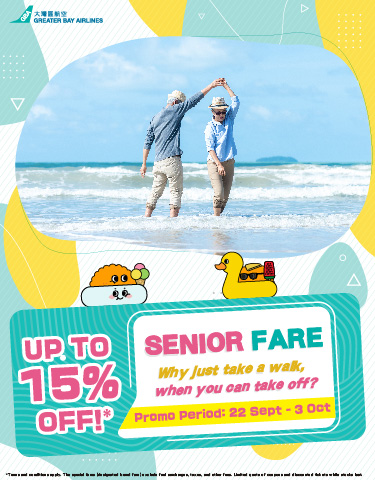 Passengers aged 60 or above can enjoy a 15% discount* for booking round-trip tickets on designated routes | Grab your coupon now