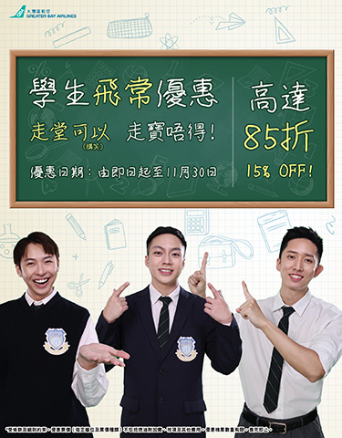 大灣區航空 學生機票85折優惠