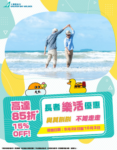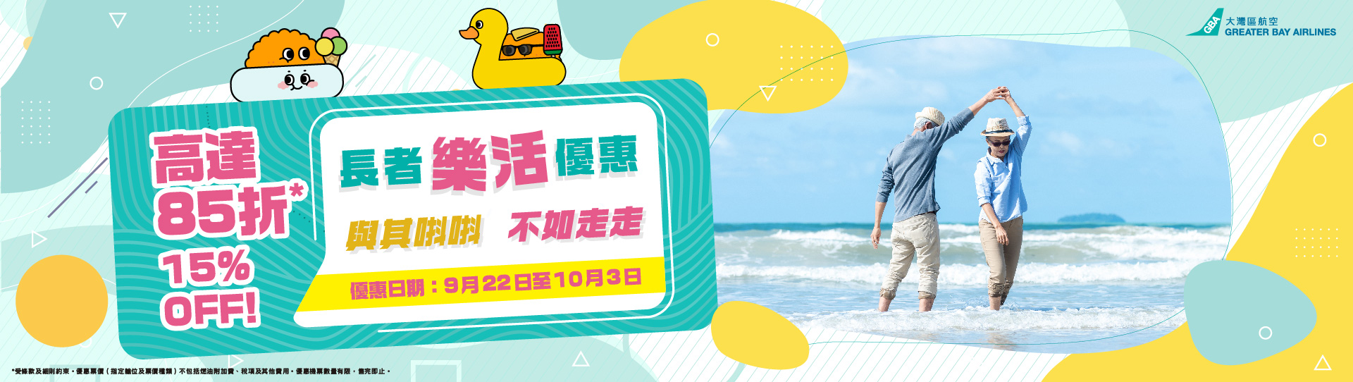 凡60歲或以上即可享85折*優惠預訂指定航線來回機票 | 立即領券