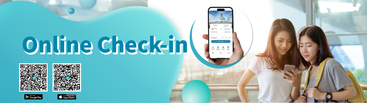 Passengers with valid e-tickets may use online check-in service, except for passengers with special requests, or requiring special assistance such as wheelchair service or medical assistance. They are required to proceed to the airport check-in counters for flight check-in.