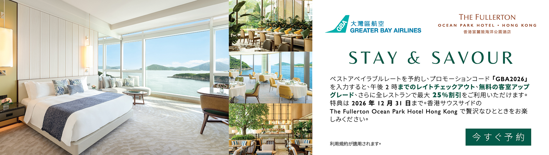 - The Fullerton Ocean Park Hotel Hong Kong は、予告なく本オファーを変更、中止する権利を有します。