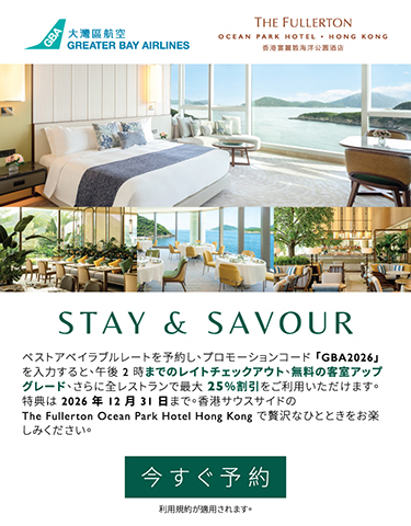 GBA × 香港ザ・フラートン・オーシャンパーク・ホテル:宿泊とお食事の「Stay & Savour」オファー