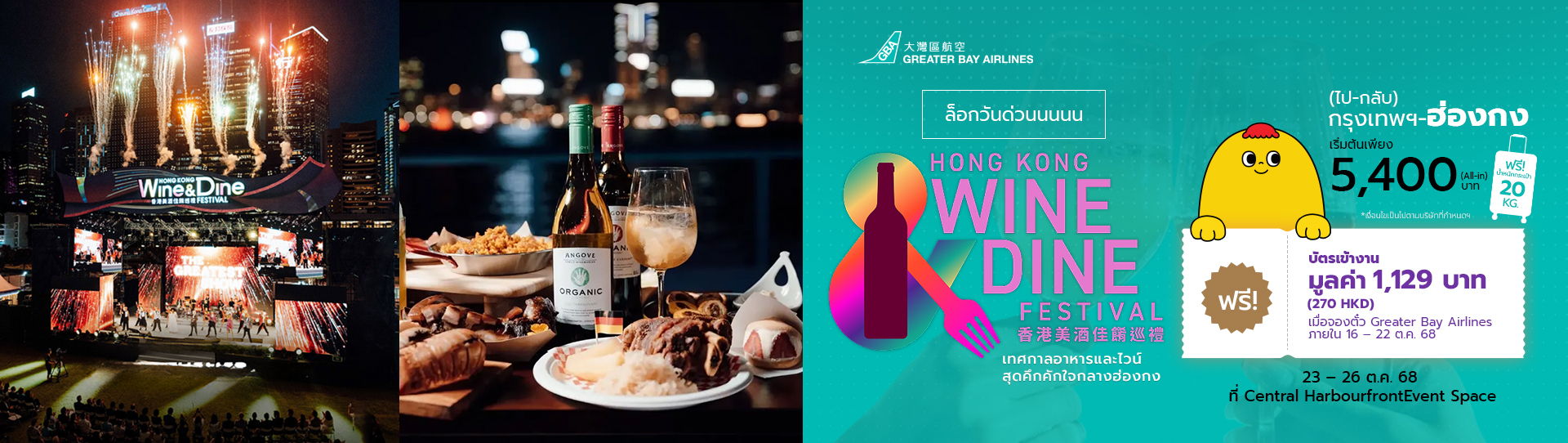 - จองตั๋วบินตรง GBA สู่ฮ่องกง ภายในวันที่ 16 – 22 ตุลาคม 2568