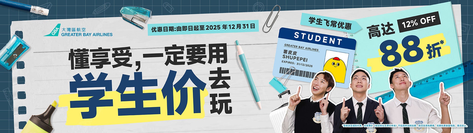 大湾区航空「惠」你启航 优惠券大放送 高达人叱币$300* 折扣