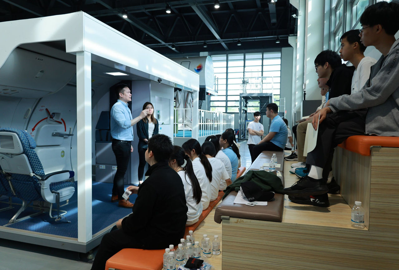The mentee graduates travelled to GBA’s training facilities in Donghai Airlines headquarters in Shenzhen for the activity where they were given a comprehensive orientation of the airline’s operations. Presented in a fun and interactive way, the sessions aimed to inspire them through a wide range of topics from the day-to-day duties of flight operations and inflight services to the flight simulator training for pilots, and from the emergency procedure demonstrations using the motion mock-up to the sharing on career prospect with an airline.