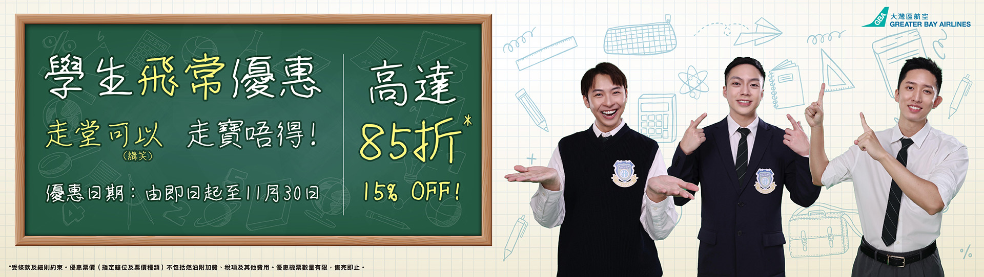 大灣區航空 學生機票85折優惠