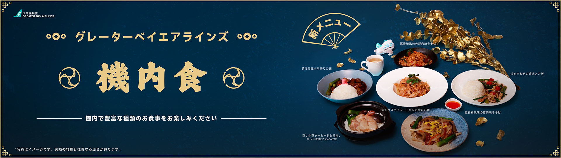 - グレーターベイエアラインズは、予告なくメニューを変更する権利を有します。事前にご注文いただいたお食事が提供できない場合は、別のメニューからお選びいただけます。