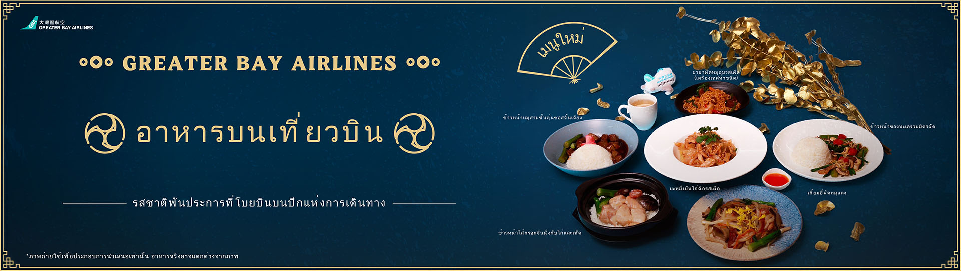 เพื่อความอิ่มอร่อยบนเที่ยวบิน สายการบินเกรทเตอร์เบย์จึงคัดสรรอาหารเลิศรสหลากหลายรูปแบบให้คุณได้เลือกซื้อเพื่อรับประทานอย่างเพลิดเพลินระหว่างการเดินทาง คุณสามารถสั่งซื้ออาหารเมื่อจองบัตรโดยสาร หรือคุณอาจสั่งซื้อล่วงหน้าผ่านบริการ “การซื้ออาหารล่วงหน้า” ได้ไม่น้อยกว่า 48 ชั่วโมงก่อนเวลาถึงปลายทางที่กําหนดไว้ของเที่ยวบินของคุณ